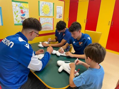 Povzbudit malé pacienty a zpestřit jim pobyt v nemocnici přišli hráči U17 ostravského Baníku. Na dětském oddělení Nemocnici AGEL Ostrava-Vítkovice strávili s dětmi příjemné odpoledne plné tvoření a dobré nálady – malovali s nimi panenky Kiwanis a rozdali jim drobné dárky.